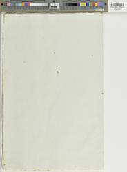 Le spécimen est fixé par une languette de papier blanc qui est collée sur la feuille glissée dans la chemise (f° 2 r°). La languette est placée au bas de la tige du spécimen.